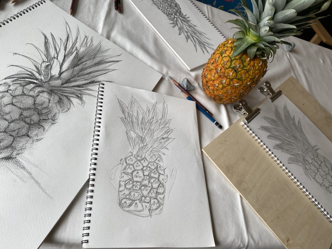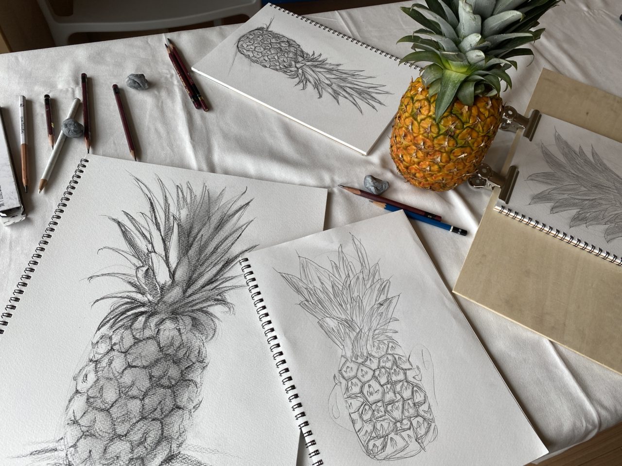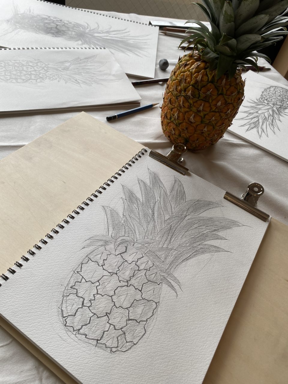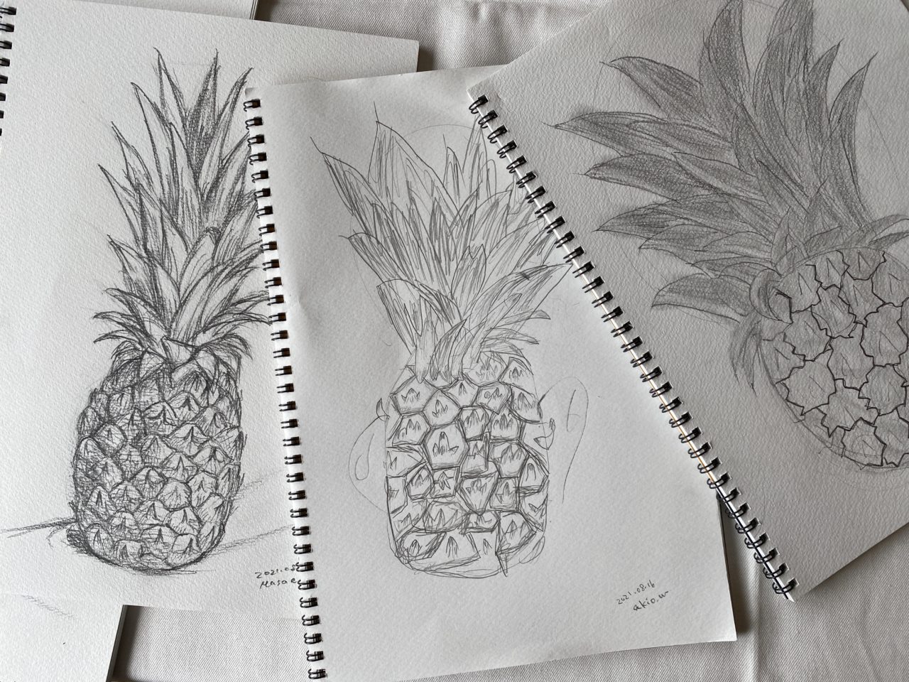 岡山で小学生と一緒に鉛筆デッサン(パイナップル)