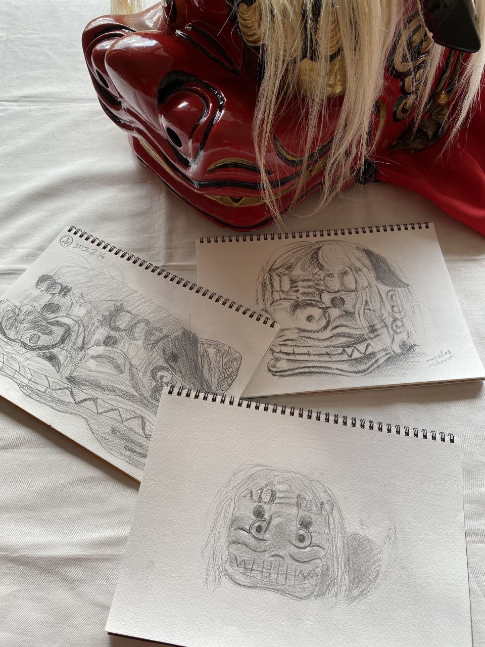 4. 岡山で小学生と一緒に鉛筆デッサン(獅子頭)