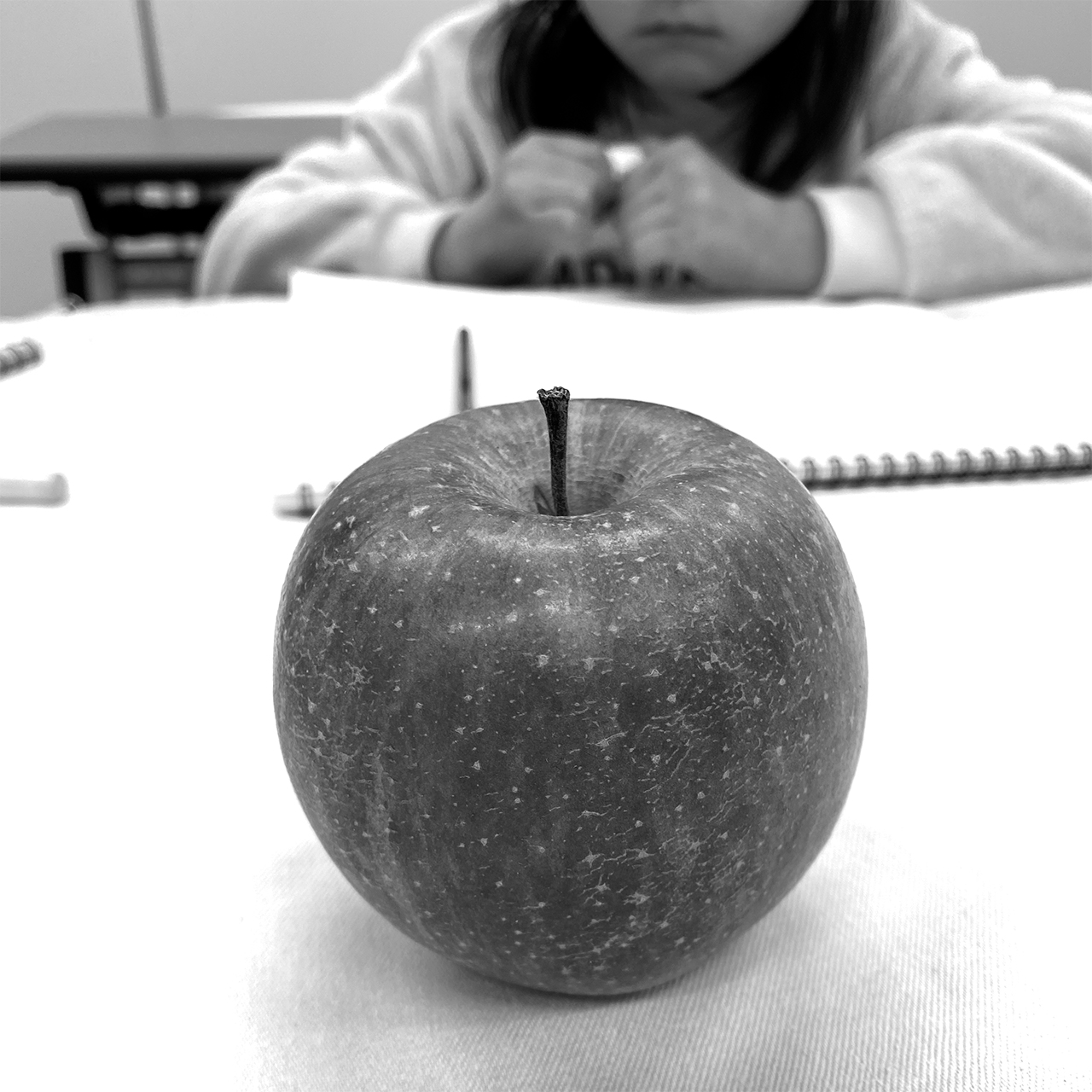 まずは、鉛筆の使い方に慣れるために、いろんなグラデーションの付け方を練習。そして、リンゴを一緒に描きました。デッサンがはじめてのお友達には一度スマホで撮影したリンゴの写真を白黒で見せて鉛筆の濃淡をどれくらいつけたらいいか確認してもらいました。リンゴが「丸じゃなくて長細かった〜」ときちんと長細く描けていました。\( ⌒▽⌒ )/よく観察できたね!しばらくは45-50分くらいを目安に、少しづつ集中して描ける時間を長くしていけたらと思います。