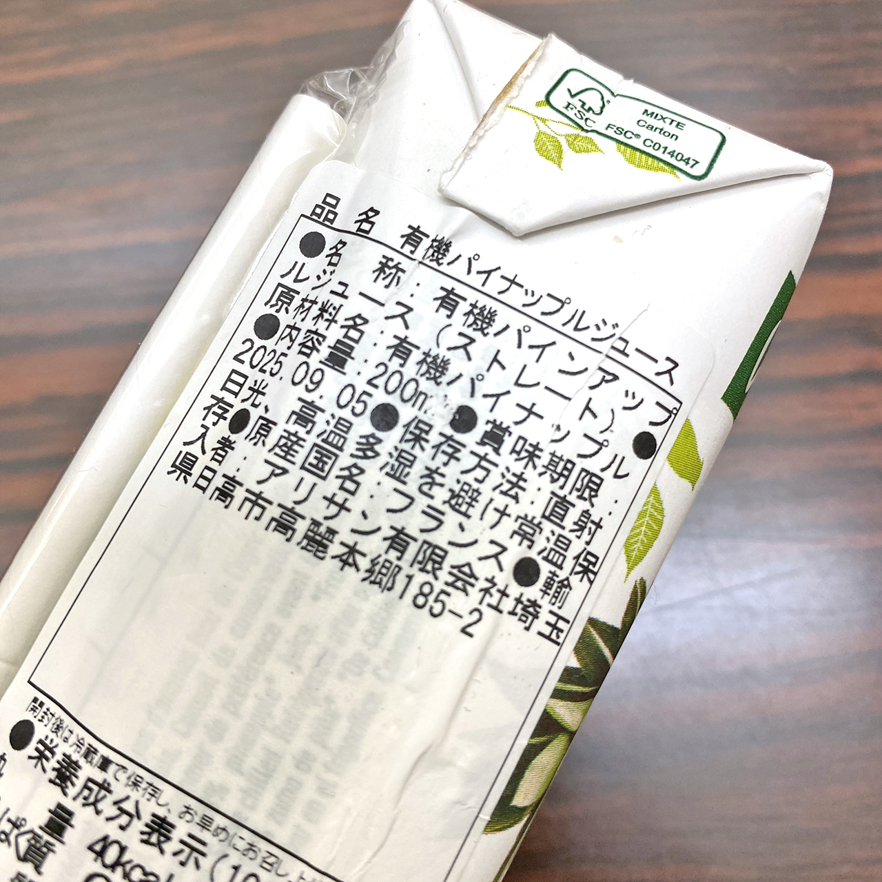 おやつは「ポテトチップス( 創健社 )」「有機パイナップルジュース( Vitamont )」でした。
