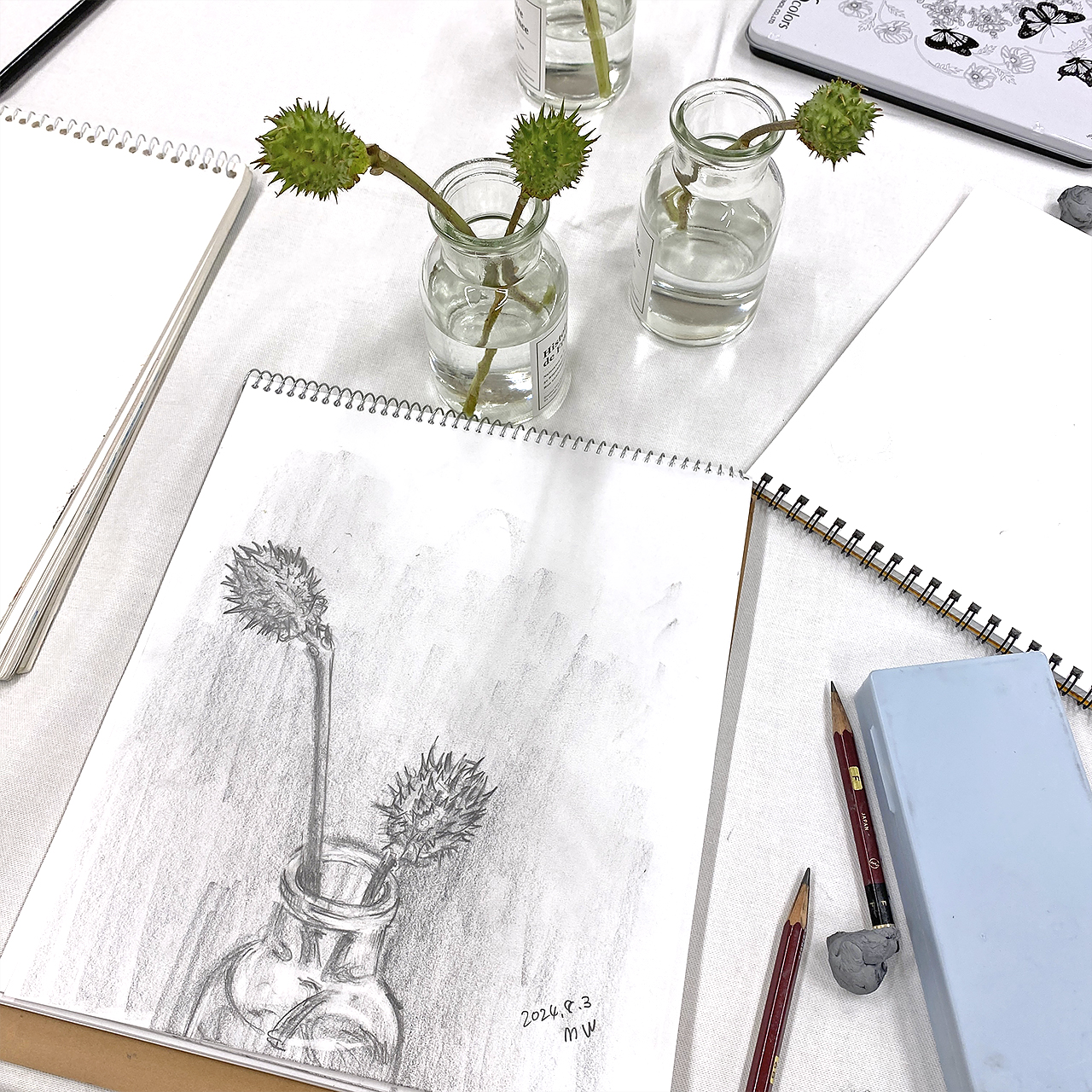 今回は花瓶+花に挑戦しました どちらも描けると素材感の違いが表現できるかもと思いましたが なかなか両方を描くことは難しいようでした