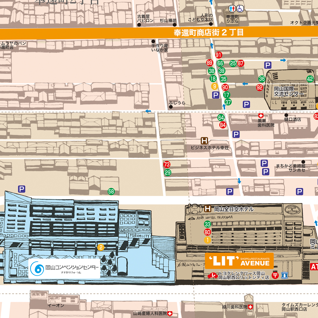岡山駅運動公園口(西口)・奉還町商店街 周辺 グルメ&まち歩き 2025年度MAP