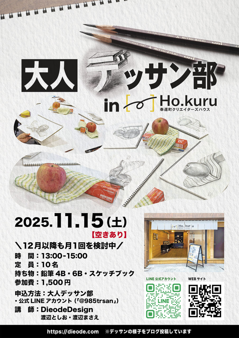 【11月開催】\大人デッサン部 in 奉還町Ho.kuru/